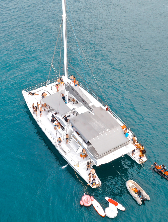 Includes: Transportation, food and drinks, 4-hour tour, guide, use of snorkeling equipment, kayaks, paddleboards and a floating mat, welcome cocktail, fresh fruit and a meal prepared on board.
